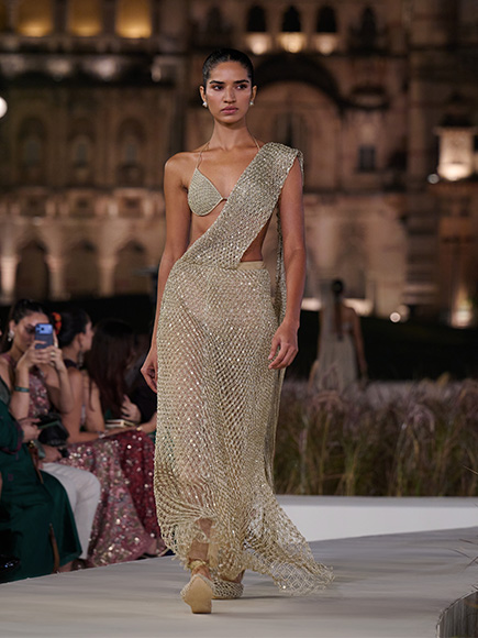 SHOP THE COLLECTION REWILD - FASHION FOR GOOD I have always believed that fashion can be a force for good, and Rewild is our step towards preserving the beautiful planet we all live in. Inspired by the forests of India, this collection brings to life the diverse ecosystems through lush trees, tropical birds & spectacular wildlife.Every detail is a tribute to nature’s poetry & the loving hands that preserve crafts, symbolizing a celebration of harmonious co-existence & conservation.” - Anita Dongre Balancing creativity with responsibility and scale with purpose, Rewild '26 was co-hosted by the Maharani of Baroda, Radhikaraje Gaekwad. Set against the grandeur of the Lukshmi Vilas Palace, we celebrated community, crafts, culture & conservation. All proceeds raised go towards our impact partners Nature Conservation Foundation (NCF), Wildlife Conservation Trust (WCT), Green Tuesday Initiative, Federation of Indian Animal Protection Organisations (FIAPO) & Friendicoes SECA to amplify peaceful co-existence alongside nature & its inhabitants. FRIENDS OF THE WILD Rooted in compassion & co-existence, a community of like-minded people came in solidarity to promote harmony alongside nature & its extraordinary wildlife. BE KIND, REWILD Tablescape: Locally Grown Flowers Mooralala Marwada, 11th-generation Meghwal singer The SEWA Story Craft-infused Couture Homegrown voices with genre-defying music The iconic Lukshmi Vilas Palace of Baroda The Rewild 2026 Collection THE REWILD COLLECTION Crafted with intention and as an ode to indigenous artisans, the lush forests of India are expressed in handcrafted macramé, weaves woven in Benaras, embroidery by the women of SEWA, Gujarat & hand-painted Pichhwai from Rajasthan. Botanical motifs & sights of the wild appear in embroidery, bows, and surface details, while the palette shifted from deep emeralds, midnight blues, and black to ivories, warm golds, and butter yellows reflecting sunlit clearings & picturesque naturescapes, staying deeply connected to the idea of co-existence and rewilding. THE BEAUTY OF MACRAMÉ Inspired by the roots of trees & dew-dipped gossamers found in the forest. Each knot is lovingly crafted by hands that preserve the craft & reimagine it for modern times. EXPLORE MACRAMÉ SUMMERFERN EMBROIDERED APPLIQUE SILK CO-ORD - GOLD $4,950 SUMMERFERN EMBROIDERED APPLIQUE SILK PANT SET - GOLD $3,450 INSPIRED BY FORESTS IN INDIA A HARMONIOUS CO-EXISTENCE HANDCRAFTED COUTURE A CELEBRATION OF INDIGENOUS CRAFTS FASHION FOR GOOD BE KIND, REWILD Kimbra Macrame Pre-draped Saree - Gold $4,600 Nozomi Woven Benarasi Skirt Set - Black $950 Masara Handwoven Benarasi Silk Skirt Set - Green $2,260 Nozomi Woven Benarasi Gown - Black $950 Ophrys Embroidered Macrame Gown - Gold $1,910 Lucinda Macrame Gown - Gold $2,170 Zephyria Applique & Embroidered Cord Pant Set - Gold $1,910 Zephyria Applique & Embroidered Cord Skirt Set - Gold $1,910 Summerfern Embroidered Applique Silk Co-ord - Gold $4,950 Meadowfern Embroidered Skirt Set - Ivory $4,770 SHOP THE COLLECTION RUNWAY LOOKS SEE MORE THE REWILD ALBUM Composed in collaboration with Gaurav Raina, Komorebi & Karsh Kale, the Rewild album mirrors the Indo-Saracenic architecture of Lukshmi Vilas Palace & our craft-infused couture collection. Featuring Mooralala Marwada, the 11th-generation Meghwal singer, meeting the rhythmic intensity of Raja Kumari’s rap. Joined by Monica Dogra’s nuanced & shape-shifting voice with Apeksha Dandekar’s captivating & sonorous vocal. LISTEN Tracking Consent This site uses cookies to simplify and improve your usage and experience of this website. cookies are small text files stored on the device you are using to access this website. if you ignore this message and continue without changing your browser settings, we will assume that you are consenting to our use of cookies. For further information on use of cookies, please see our Privacy Statement. Yes No